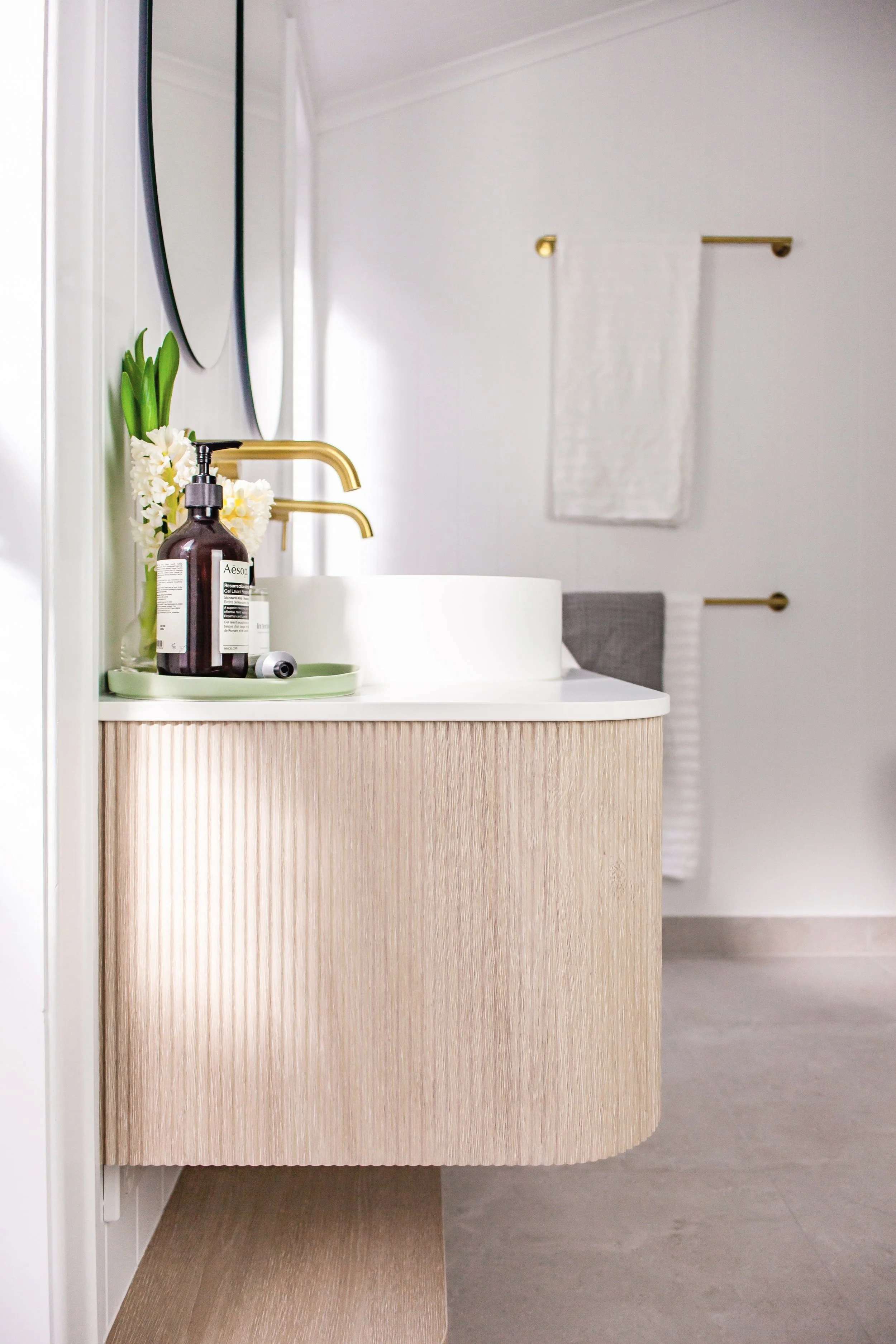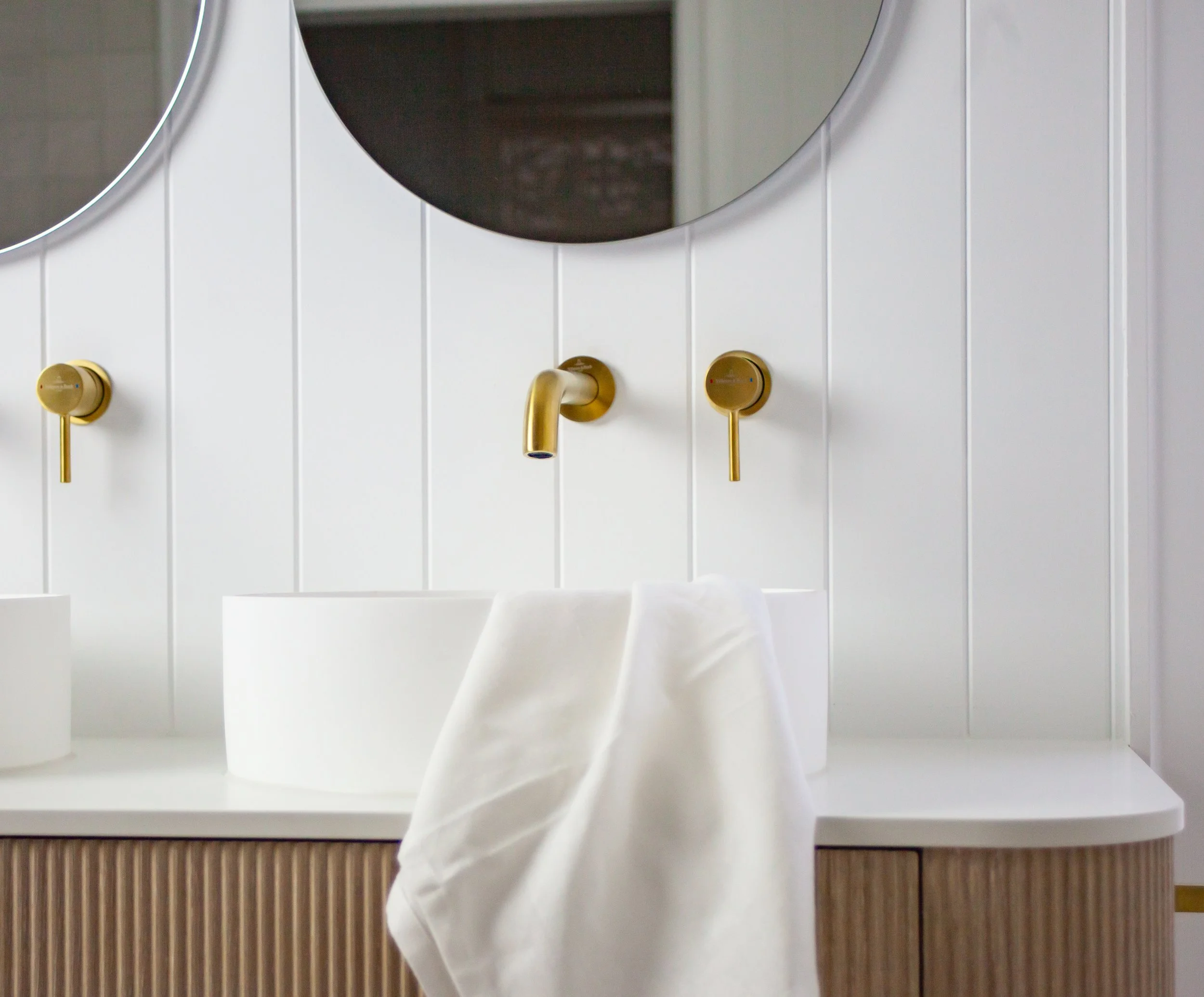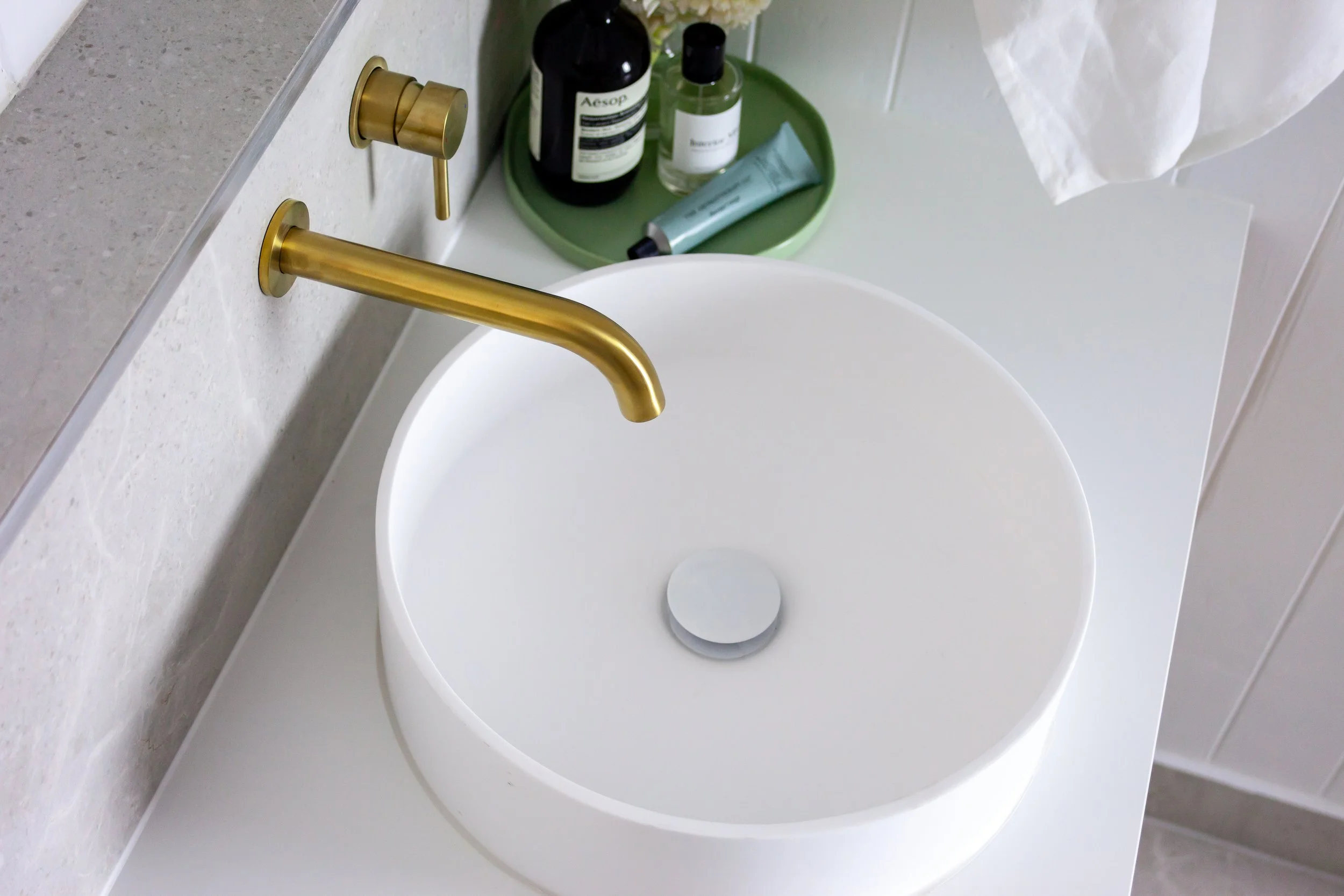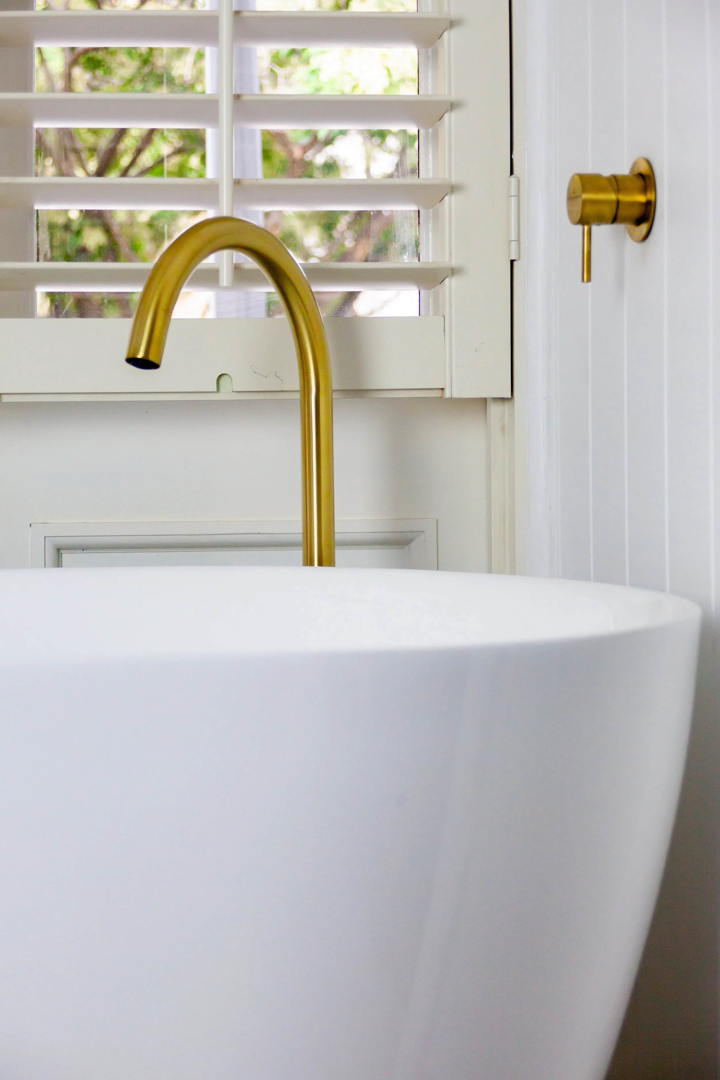 GOLD HARDWARE IN ENSUITE BATH,